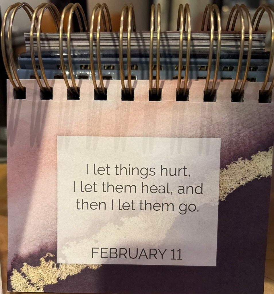 Loved this message for today as I arrived to the main studio. Whenever someone tells me they are sad, depressed, anxious, hurt – I am mindful of how they are feeling but I do say “feel your feelings right now, you’ll have new ones soon” it’s a take on the advice of Jillian’s doctor who treated our family when she was diagnosed with OCD. These feelings will pass… sometimes the healing takes a while but if you work on it, you’ll heal. It’s a forgive and forget mindset.