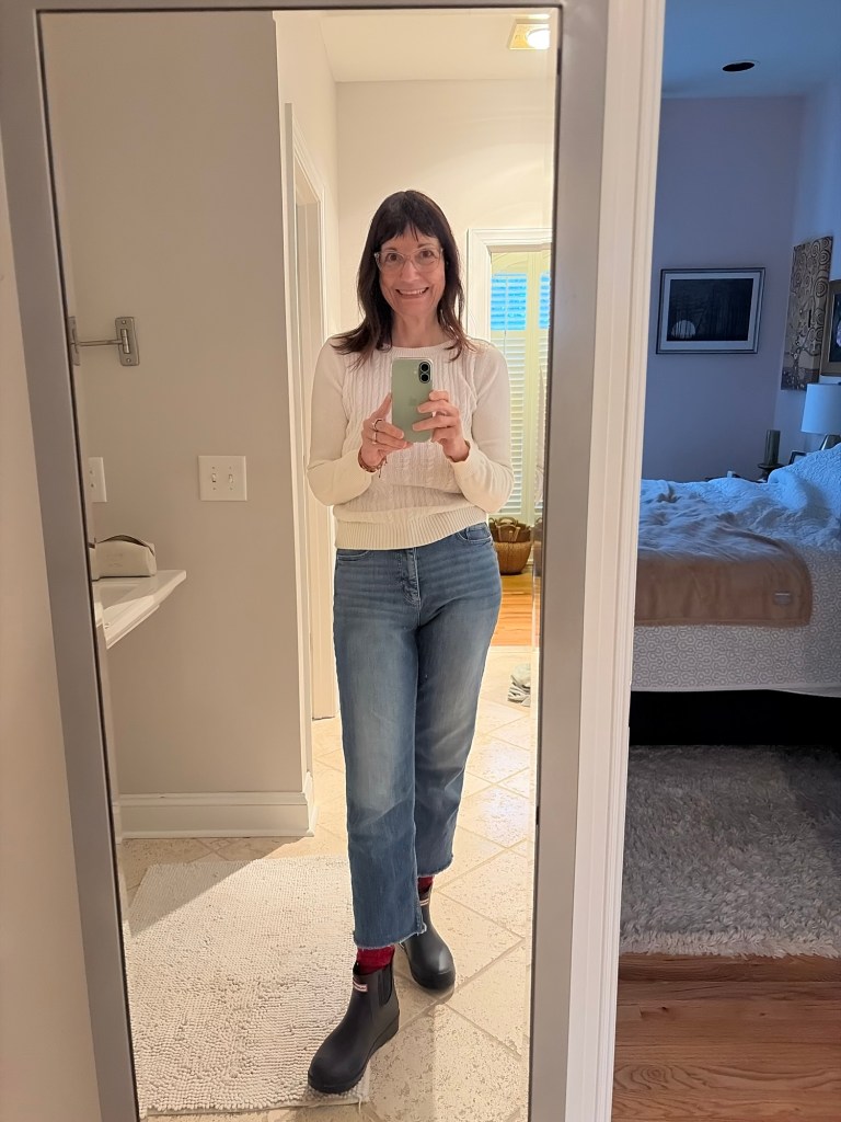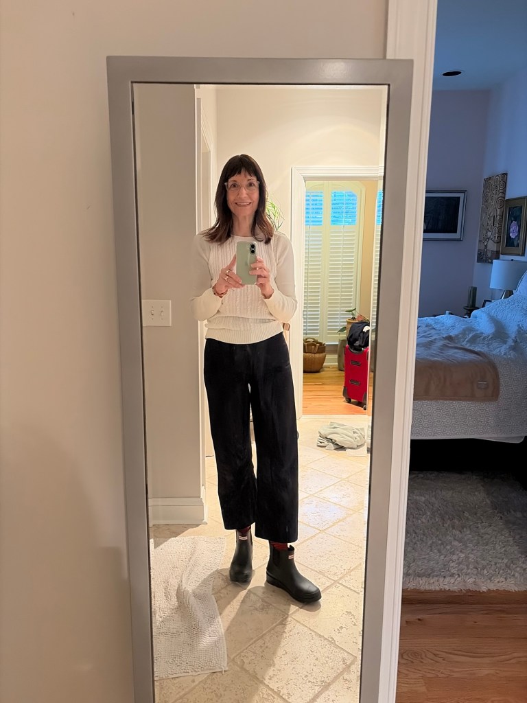 Tuesday day off, futzed around and got things done before my overnight trip to Philly! Got my rain boots styled for my two outfits. (Jillian approved) it was mostly the pants I wanted to get right.