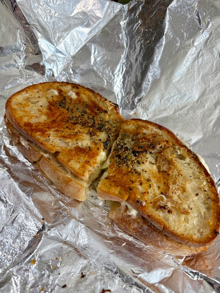 3/5: we all got a good night’s sleep, some of us in a bed and one of us on a comfy couch!!! We emptied some coffee pods into the drip coffee maker so we could all at least have a cup of coffee and then we packed up and ubered to the train station to store our bags for the day ($20) so we could galavant. While waiting in line a guy was behind us who took a call and then said “I am in the middle of something, can you call me back later after 3 but text me first to let me know you’re going to be calling. Okay thanks bye” and I was just like “OMG NICELY DONE OWNING YOUR TIME!!!” and we all just started talking and our new friend Kyle heard us looking at restaurants for lunch and Mary asked him where would he go for a Philly Cheesesteak and he said Woodrow’s Sandwich Shop so off to South Philly to get our lunch! We were dropped off on a cool little artsy part of town that I pointed out is much different than the downtown scene we had yesterday at lunch (Comcast Campus is right in the middle of downtown) I think most of the people near the sandwich shop were still sleeping at lunchtime because they work at night on this cool street!! (In my imagination it is like a little goth villiage where they start getting up around 3, and starting to get out and about around 7pm,) Okay there was a goth store across from the sandwich place that gave me that thought haha store was closed of course because it was early!!! They probably don’t open until like 9pm!!!! I’m just glad Woodrow’s was open because I had the freaking best grilled cheese. Parmesan herb crust, american and taleggio cheese and pear!!!! Delicious, so thankful for Kyle!