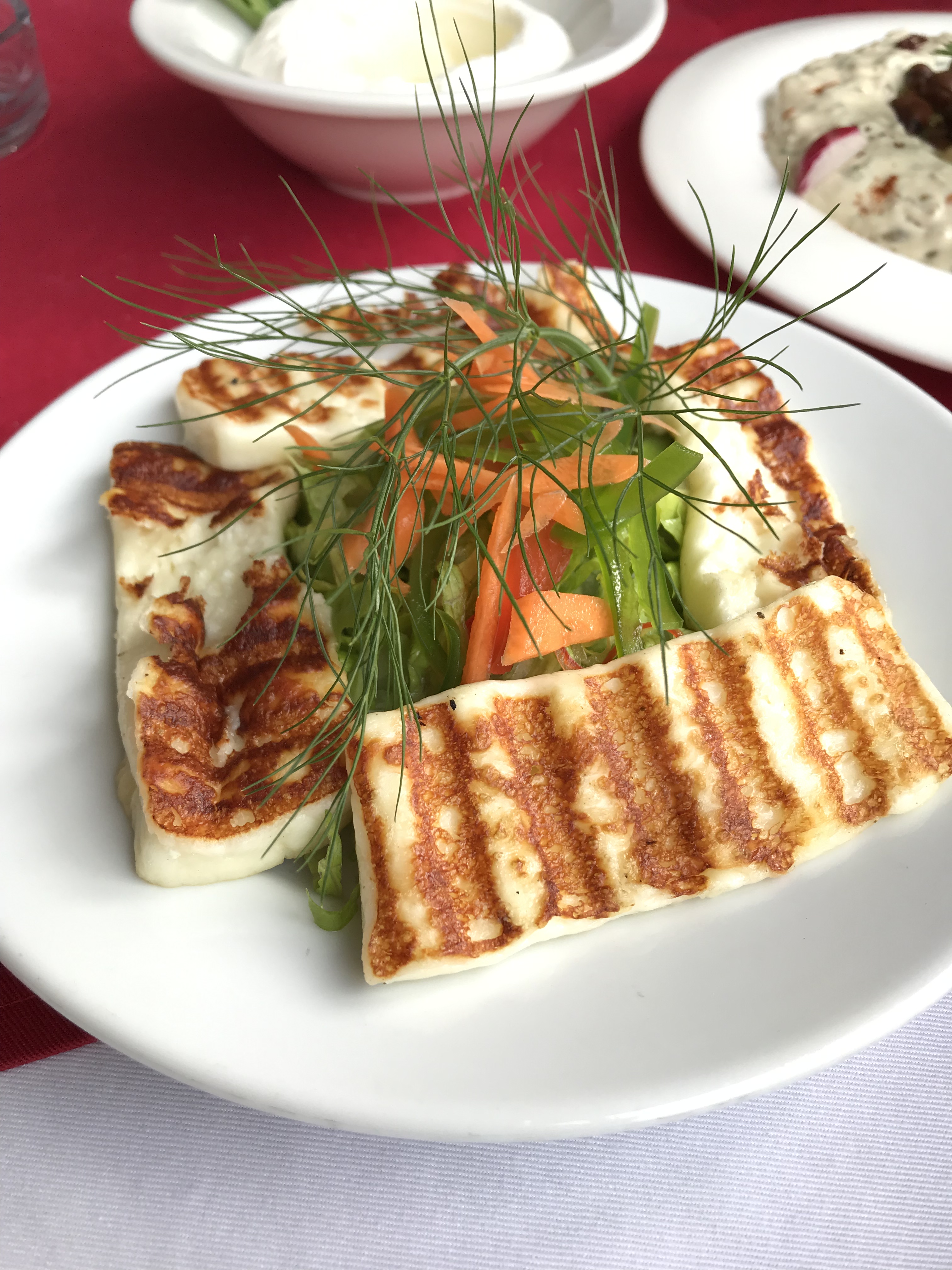 I knew that being a vegetarian in Jordan would be easy but this Halloumi cheese is SOOOOO GOOD. It is high in protein and low in carbs and can be grilled like a meat or tofu. It *is* a high sodium cheese but since my blood pressure is on the low side, I think I’m safe (if I don’t over do it!). We had other dishes and I had a freshly squeezed Pomegranate juice (YUM) and Mike had Limonana.