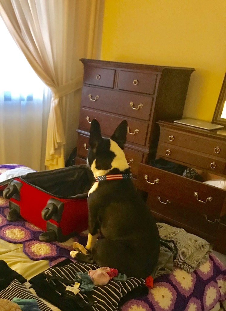 As I mentioned in my last blog, the girls and I had tickets to meet each other in Londontown and I caught this scene as I was packing… Finn started to get a little bit of suitcase anxiety after Mike started traveling a few years ago. His body language says it all… sorry bud – mom needed to visit her human children!