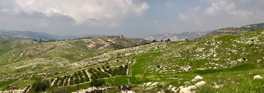 This might be a good place for me to post a video of the “visitors” we had to the area behind our apartment recently. Throughout Jordan you see flocks of sheep and goats sometimes with a donkey and often with Canaan dogs and always with one or two shepherds. They come to the green areas (which are aplenty due to the extended rainy season!) so that the animals can eat and rest and then they walk through the streets.
