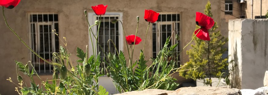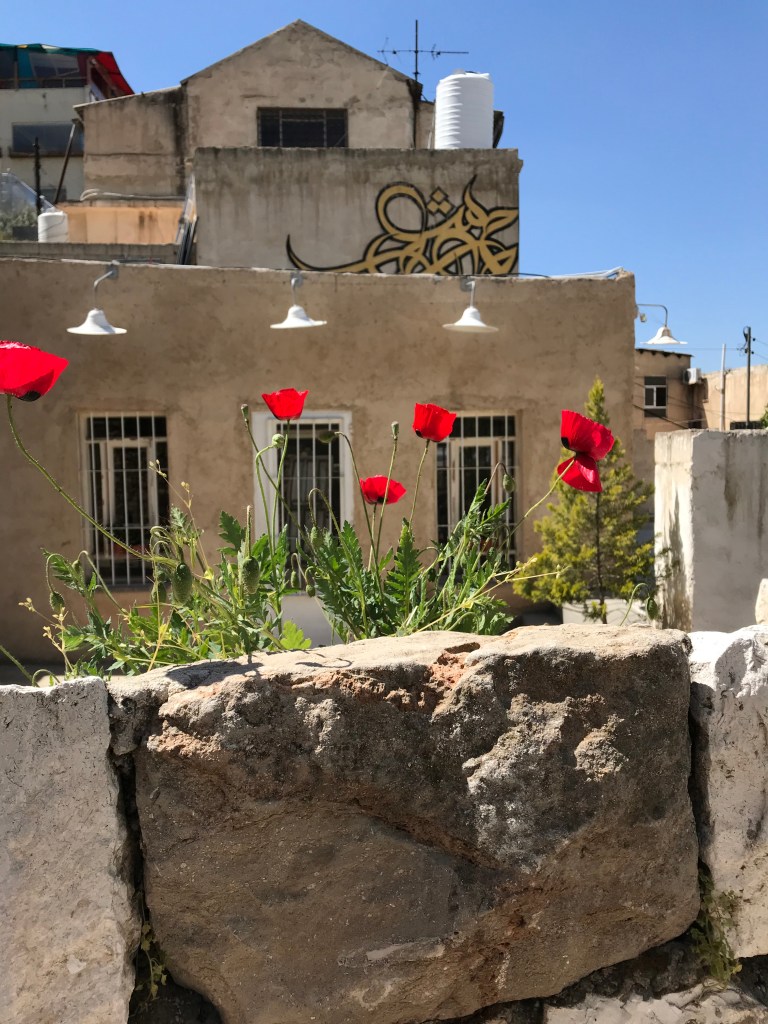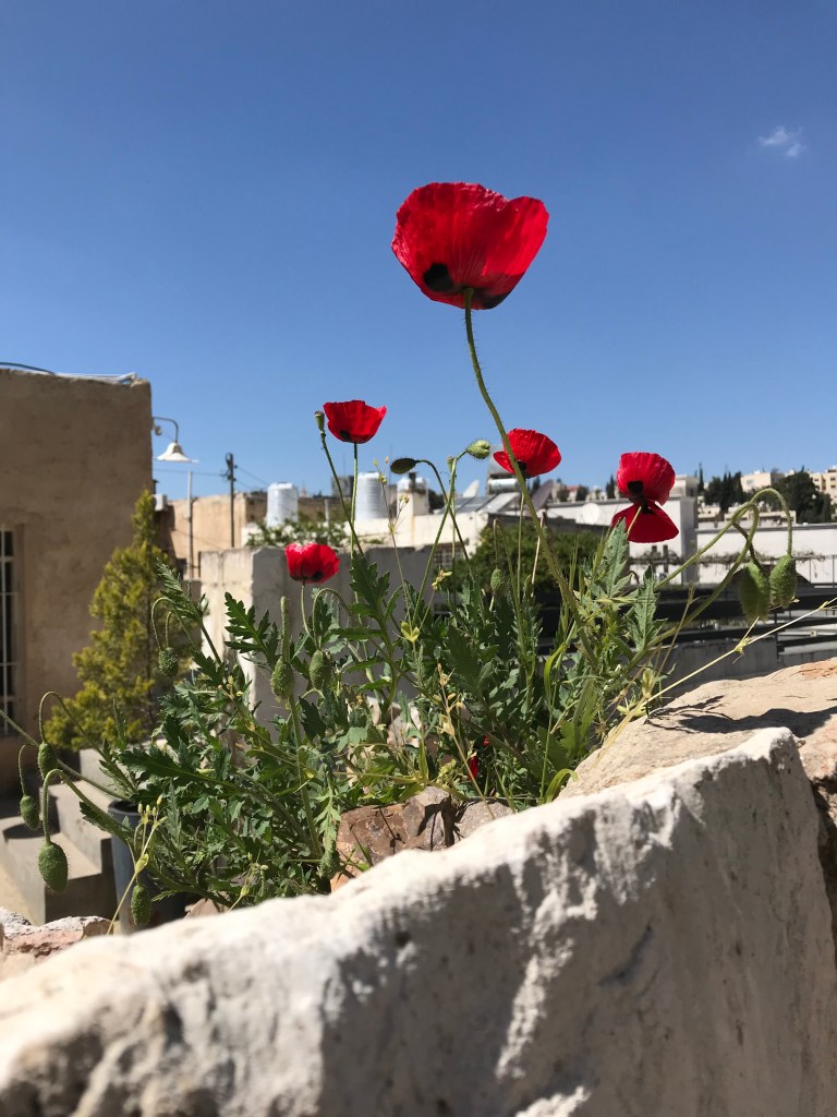Finally went to the amazing, vegetarian Shams El Balad restaurant and while exploring the gorgeous building I captured some poppies that sprang up. Is the sky bluer in Amman?