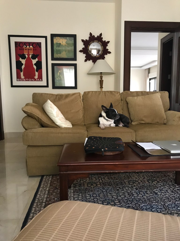 I talked a little in my last post about being happy to have found an indoor hall for the dogs to play, we did a couple more dog play dates so I am going to share a joyful picture because the pups had so much fun. Our playgroup ended up having a big scare with one of the dogs, she was being boarded at the facility and got loose in the wilds of Jordan for two days!! Thankfully, she was found and returned but I have to say that was the scariest thing I have experienced since I’ve been here. Here’s a fun pictures of Finn and his friends and a few of Finn in Repose for his fans who have put in special requests for “more Finn”