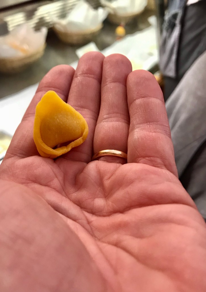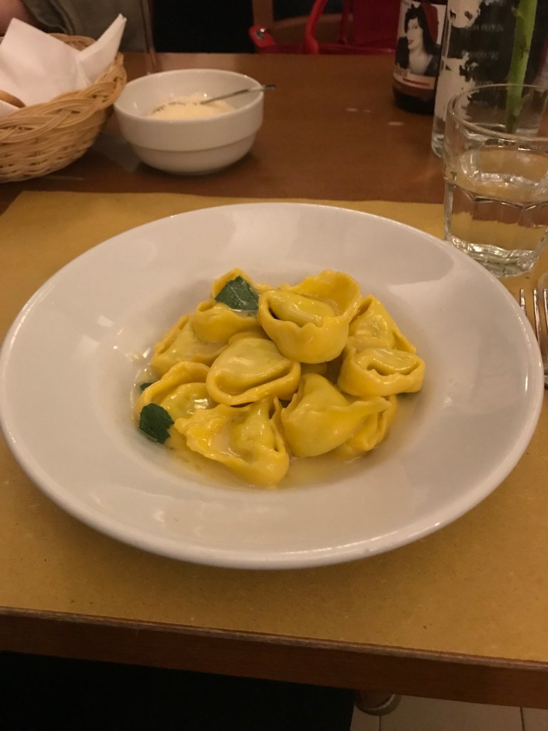 We had amazing meals in Italy, of course. Mike and Abby had the dish that is famous in Bologna, Tagliatelle alla Bolognese. This was my dish, tortellini with sage and butter sauce,mmmmmm. The next day we went on a food tour of Bologna and Mike rolled a perfect tortellini after we watched the women at Le Sfogline working their magic!