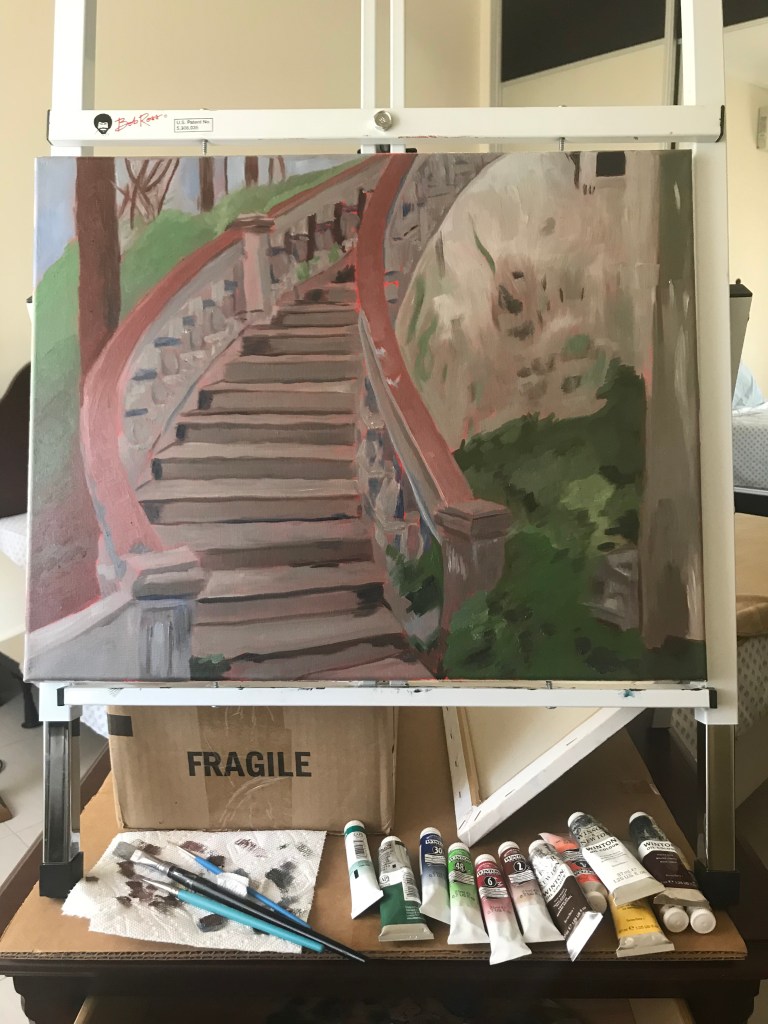 My painting supplies were delivered!! This is the work in progress that will go in the bottom center frame spot above.