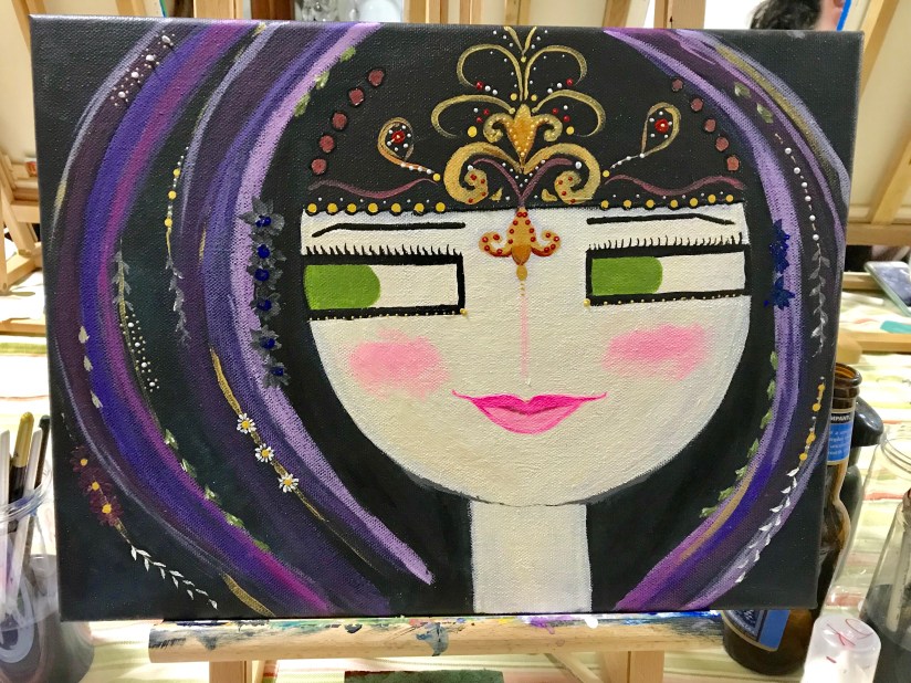 Final picture for the epic-ly long blog post is my cute “Moroccan Lady” painting that I did with a fun group of ladies this week led by Lucy Roman – we had a great time at Patricia’s house, eating, drinking and painting. I think I will do another one at home and give her brown eyes so I can have one for each of my girls!