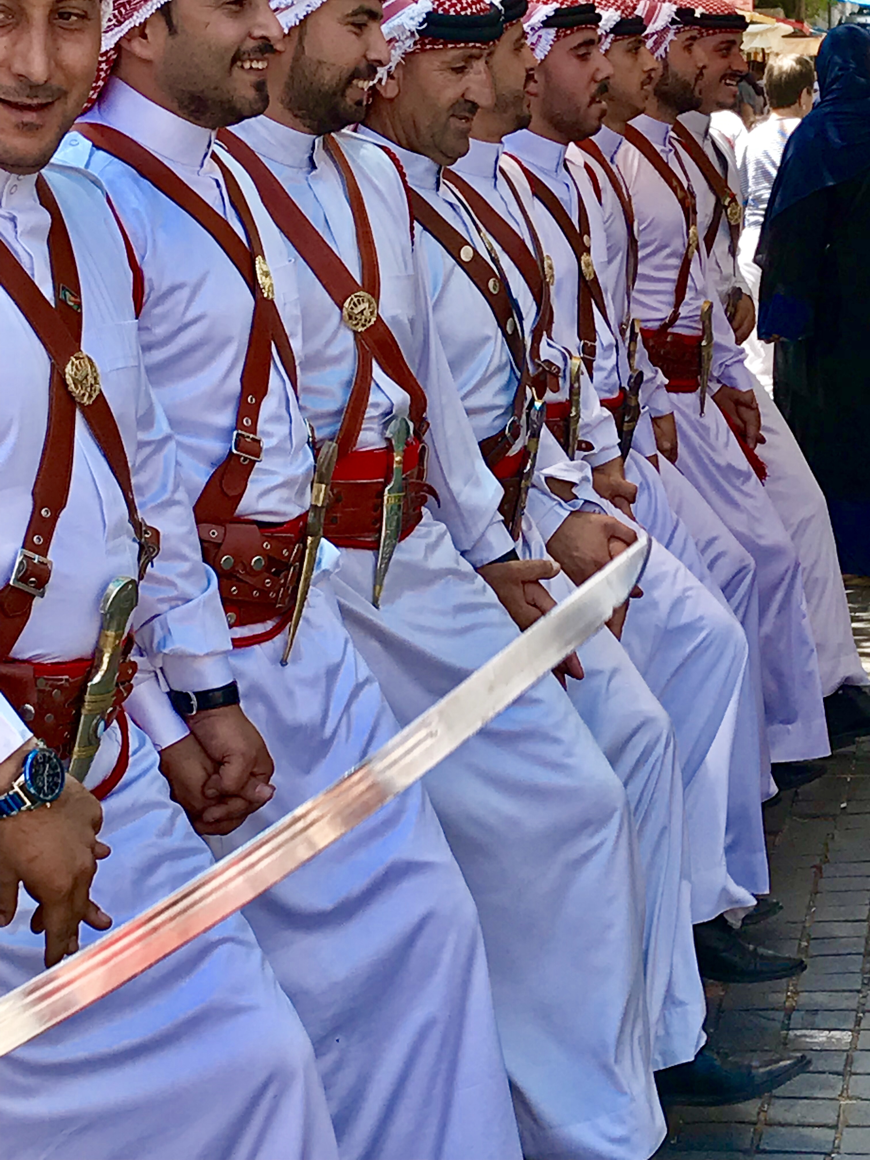 We made it back to Amman in time to be able to check out Souk Jara which is a street market held on Friday mornings just off of Rainbow Street. Soooo many awesome vendors showcasing their artwork, jewelry, clothing… As we were leaving we got to experience (what my internet research revealed is Dabke) a Levantine folk dance group performing to the sounds of a bagpipe and drum!