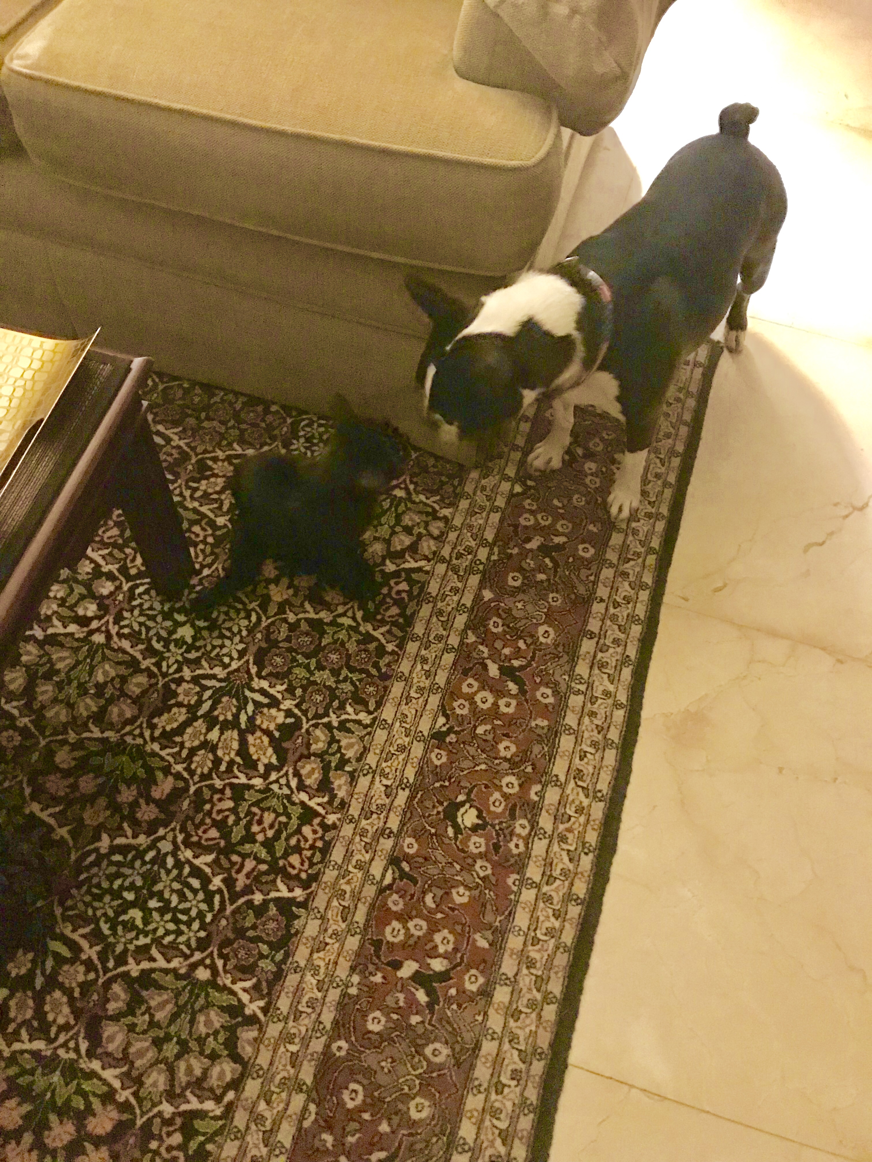 The next day at lunch Dr. Ziyad met me at my apartment and gave her shots, cleaned her ears, squirted on some flea/tick treatment, clipped her sharp claws and determined that she was a good social girl and would make a nice addition to our family – especially since he said “Finn loves everything”. In honor of her home country I named her Black “Iris” of Jordan after the national flower. She and Finn have since met and absolutely love to play together.