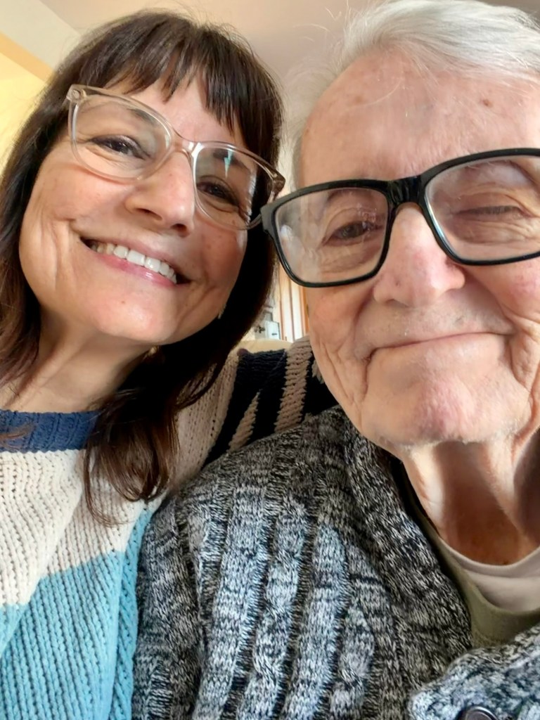 My dad’s birthday is March 18th. Today he turned 82. He really cannot believe it. It must be so strange to not have an awareness for how old you are. I ask him what age he feels and he usually sticks somewhere between 40-55. We video called with Debra and then with Denise – they were both at work and they looked so beautiful, my little sisters. I cannot express with words how much those two people mean to me. Man, I’m going to look like my dad when I’m old LOLOLOLOL I don’t have the wonky eye but I have the crooked nose and smile lines down the sides of my face. Maybe my skin will survive better than his, he never protected his face from the sun. He won’t cop to it now, but he smoked and drank too. Today he said he wanted a cigar. He’s in there alright. Shirley got him a TV Table haha and a new comfy sweater. I told him my presence was his present.