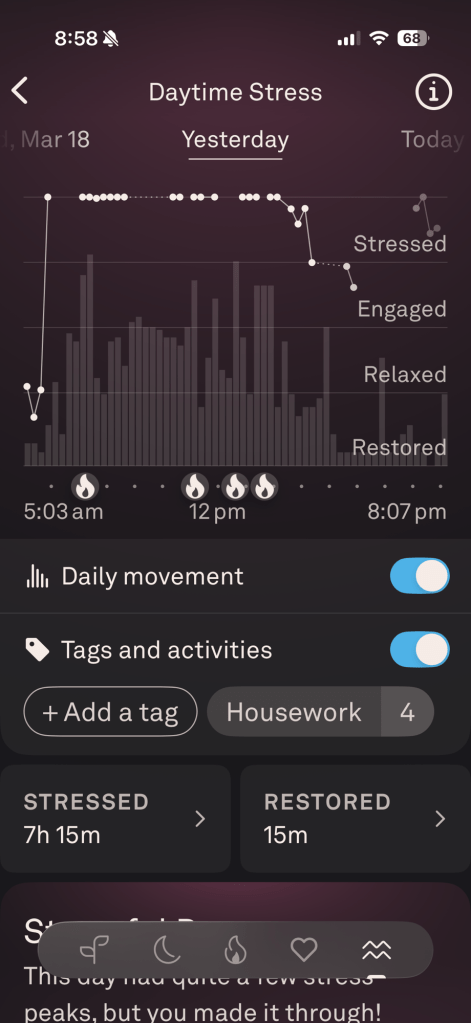 My peaceful workday!, you wouldn’t believe it if you went solely on my metrics from my Oura ring. I remind myself, it is my physiological stress not my psychological stress.