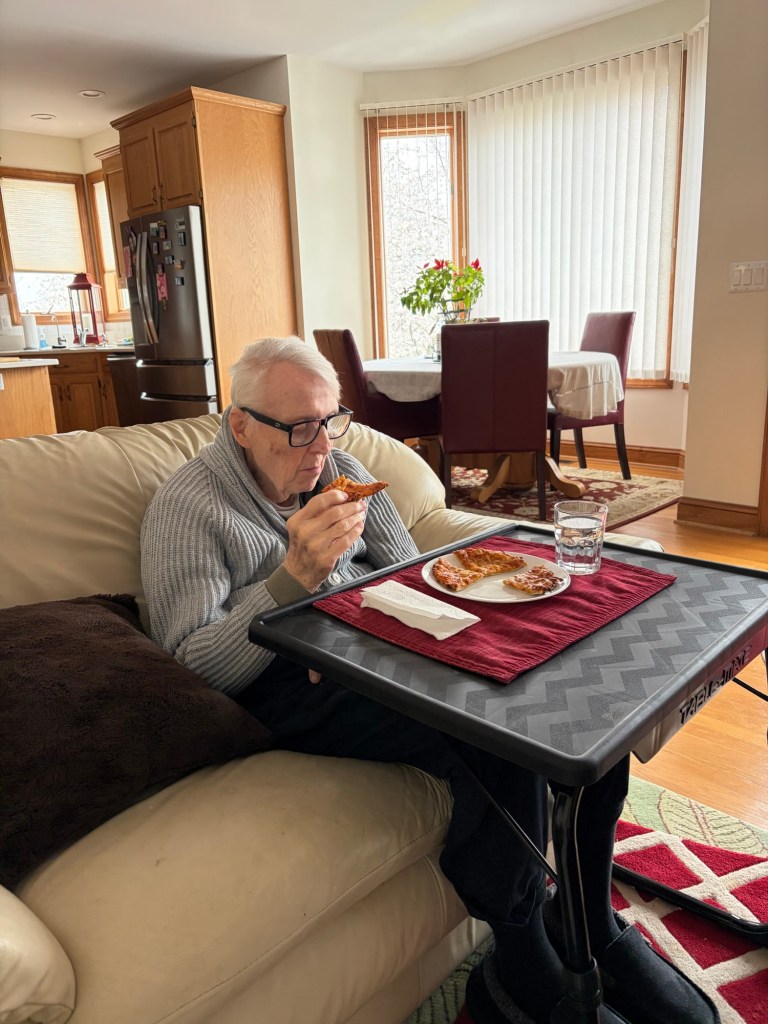 My dad looked and felt great when I arrived – HOLA DIANNE, sitting with him in his nonsense with our coffees made me calm down and I felt my mood lighten. Shirley went out to run some errands and then walk with her neighbor so I did lunchtime with my dad, a personal pizza and a big glass of water on his birthday table as we listened to his music. We talked and sang, just what I needed. I’d picked up an evening shift at element so I left my dads, picked up an impossible whopper and drove to the city dock and ate my whopper and listened to my book. Night shift was great, lots of familiar faces, felt productive. Went home to my guys, had a couple of peanut butter cups, watched a show and went to bed. Be peaceful, don’t give guilt trips, just be a good person and if you want to talk to someone and tell them how you are, just call them. Bye for now.