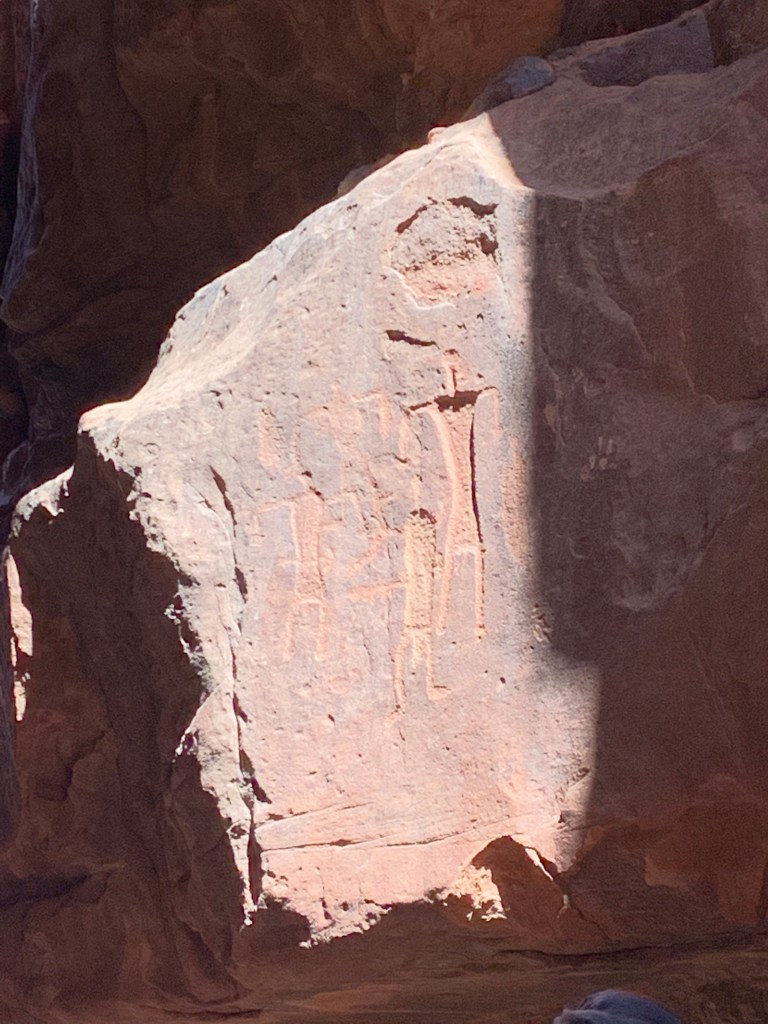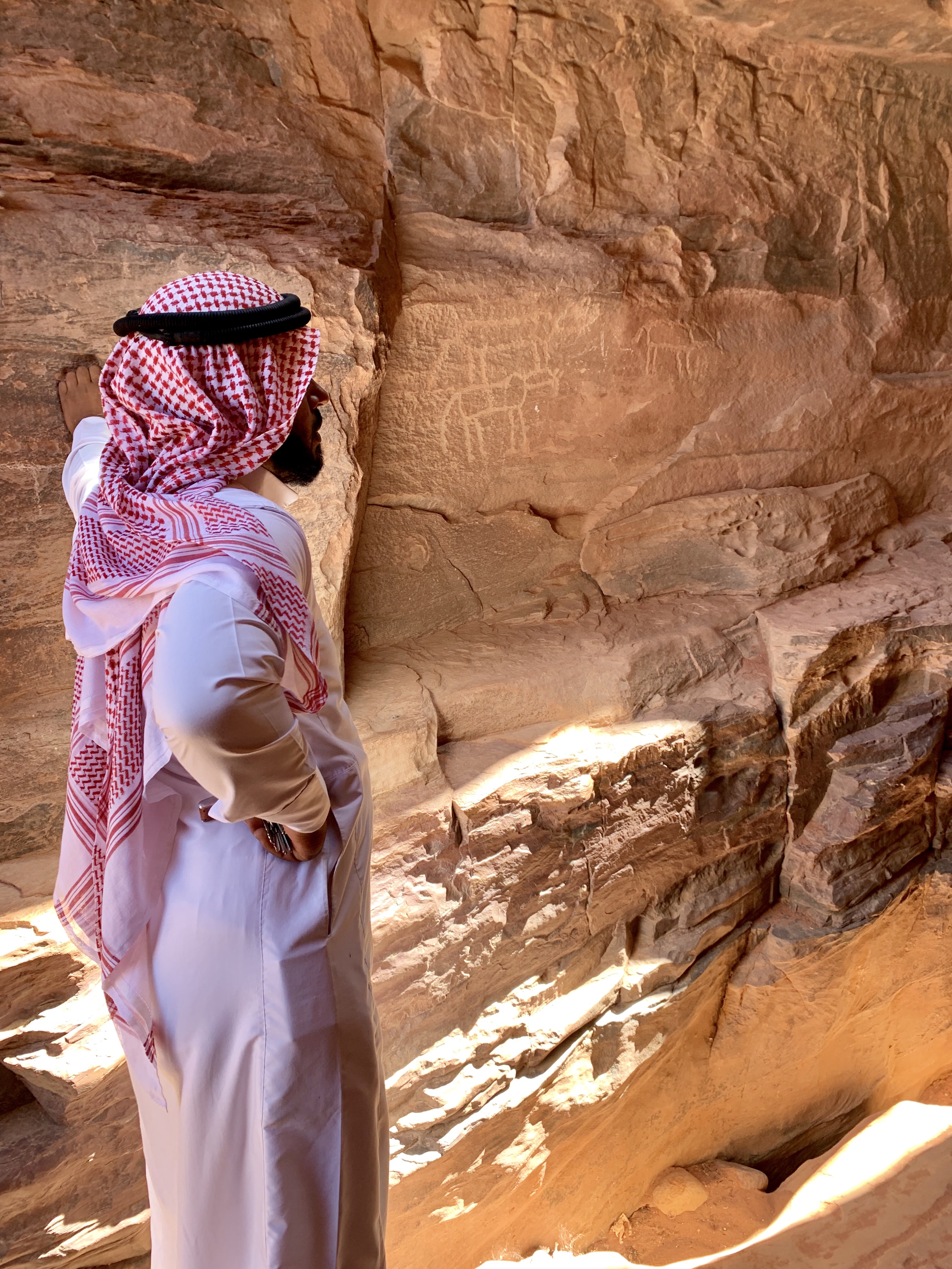 Our guide standing in the canyon where you can see some of the Nabatean petroglyphs, which are found throughout Wadi Rum.