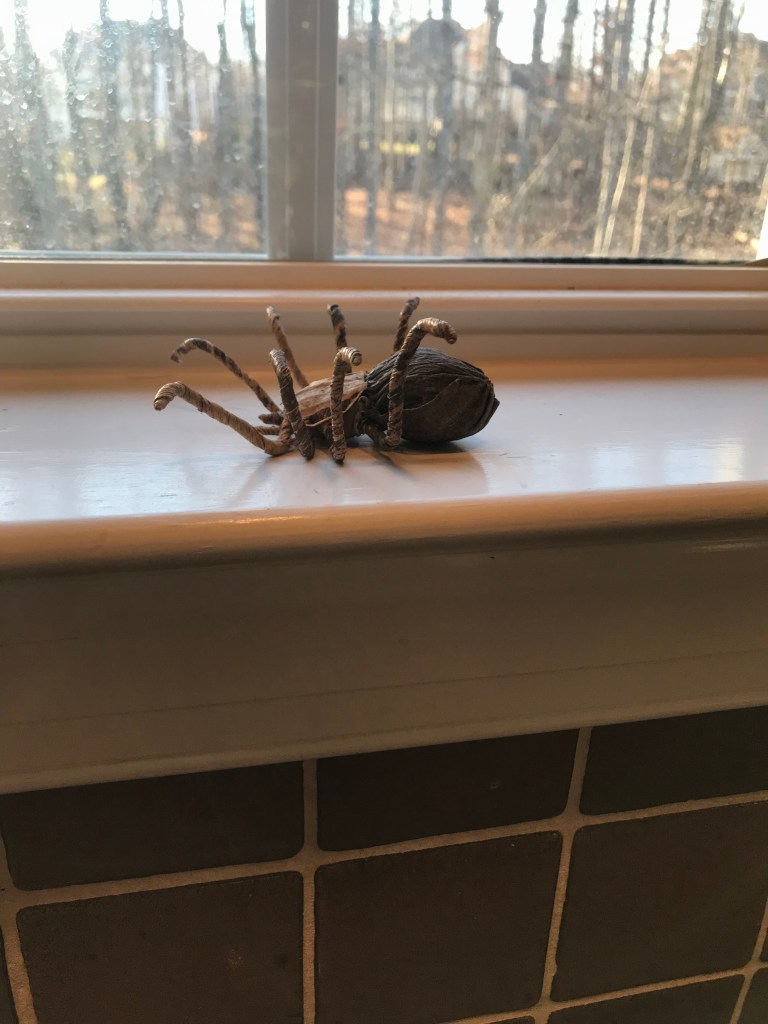 One other stir that even I was freaked out by was on Tuesday when the team was here packing and wrapping everything and one of them said “is that a spider up there?” I stood on my tippietoes to look into a high cabinet and I did see partial legs as if a spider had maybe died up there? Once I showed my confusion the rest of the people in the house became concerned. I am the spider capturer (and sometimes killer if they are the big ones we get here in the woods, sorry big spiders I don’t like to kill anything) in my family I got on a chair and looked and reached in and picked up…
